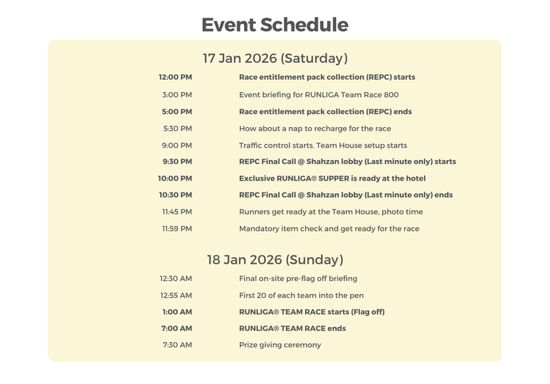 A1 : The RUNLIGA Team Race 800 2026 will be held in Fraser's Hill.