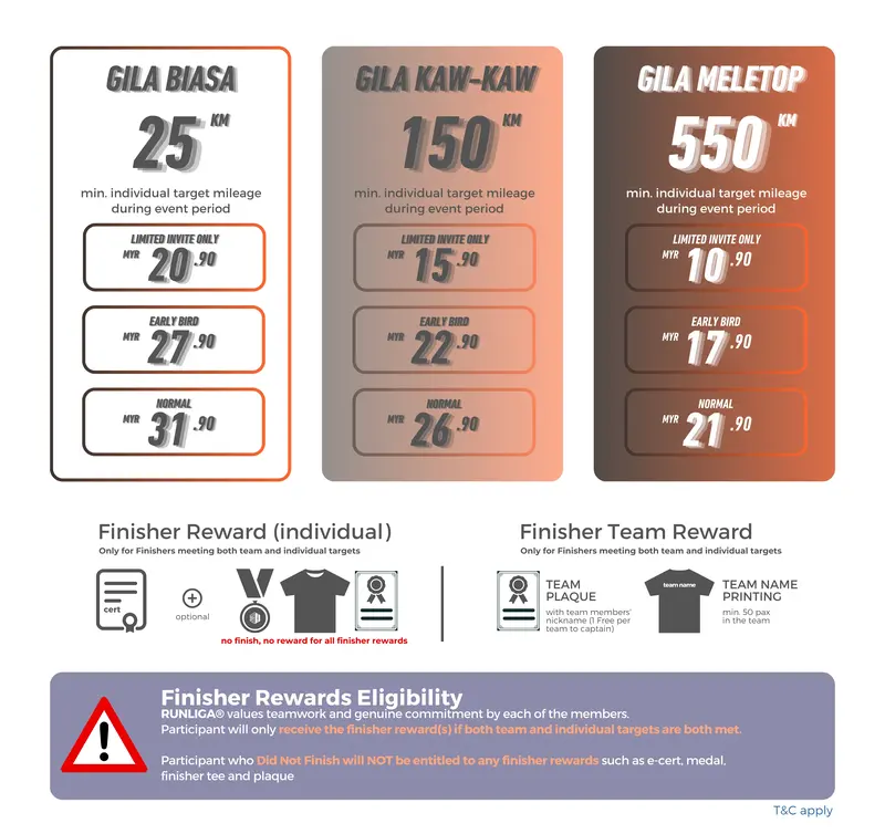 A4 : Yes, to be recognized as a Finisher, you must complete both the individual and team mileages. Only participants who meet this requirement will be eligible to receive the Finisher items they have pre-ordered. As per RUNLIGA tradition, Finisher items will not be released to non-finishers under any circumstances.