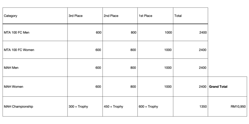 ✅ 5 Prize Categories (MTA 100 FC Members Men & Women, MAH Men & Women, & MAH Championship)