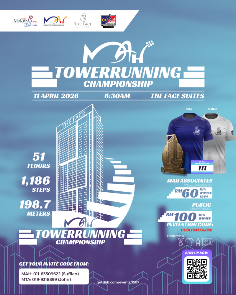 MAH Towerrunning Championship is Malaysia's first collaborative tower run event, jointly organised by MTA and MAH, hosted at THE FACE Suites. The event promotes wellness, team building, and competitive spirit among hotel professionals and towerrunning athletes.