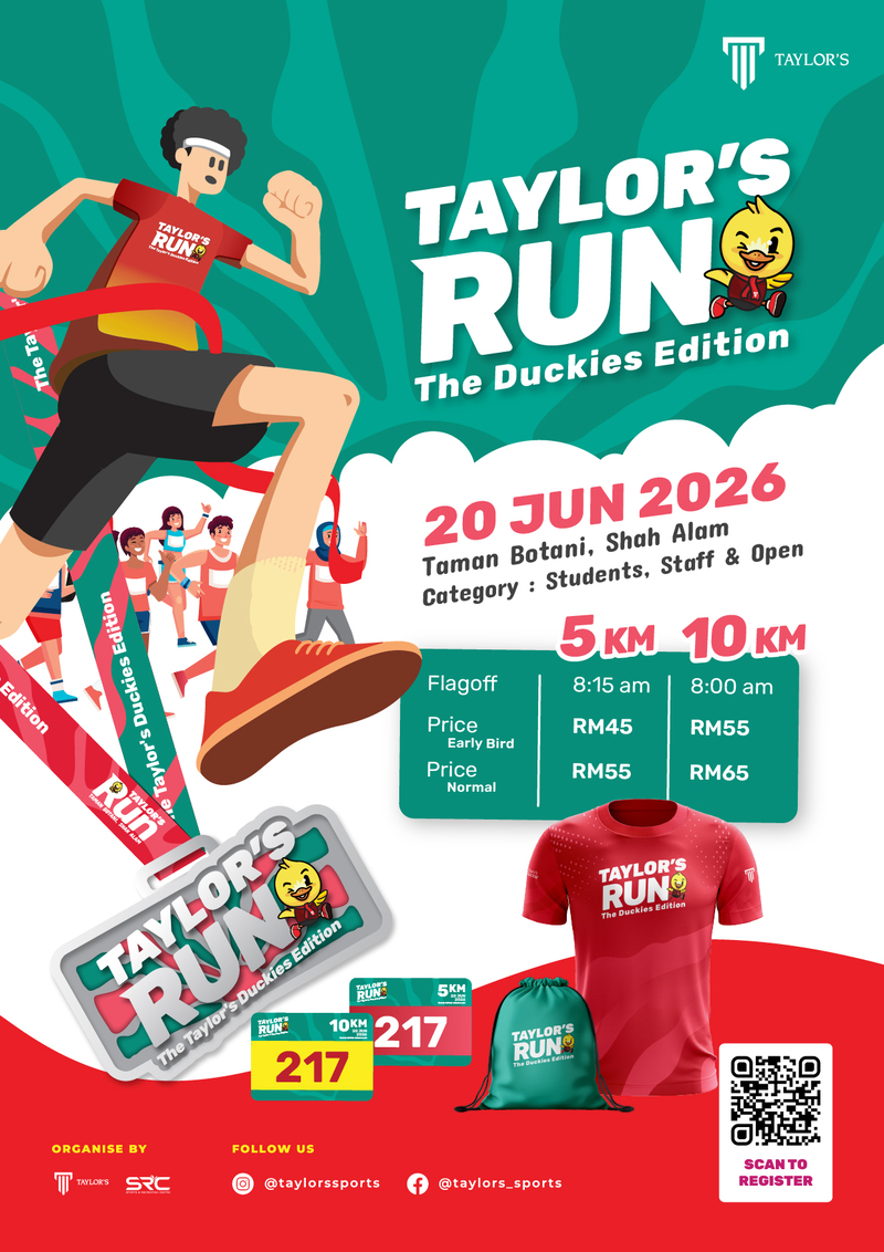 Taylor's Run is an annual running event proudly organised by the Taylor's Sports & Recreation Centre (SRC) over the past few years, promoting an active and healthy lifestyle within the Taylorian community and the public.
