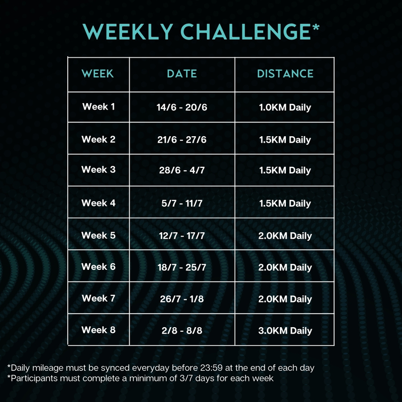 R1: Participants are only allowed to submit distance tracked activities. Step Count activity will NOT be accepted.